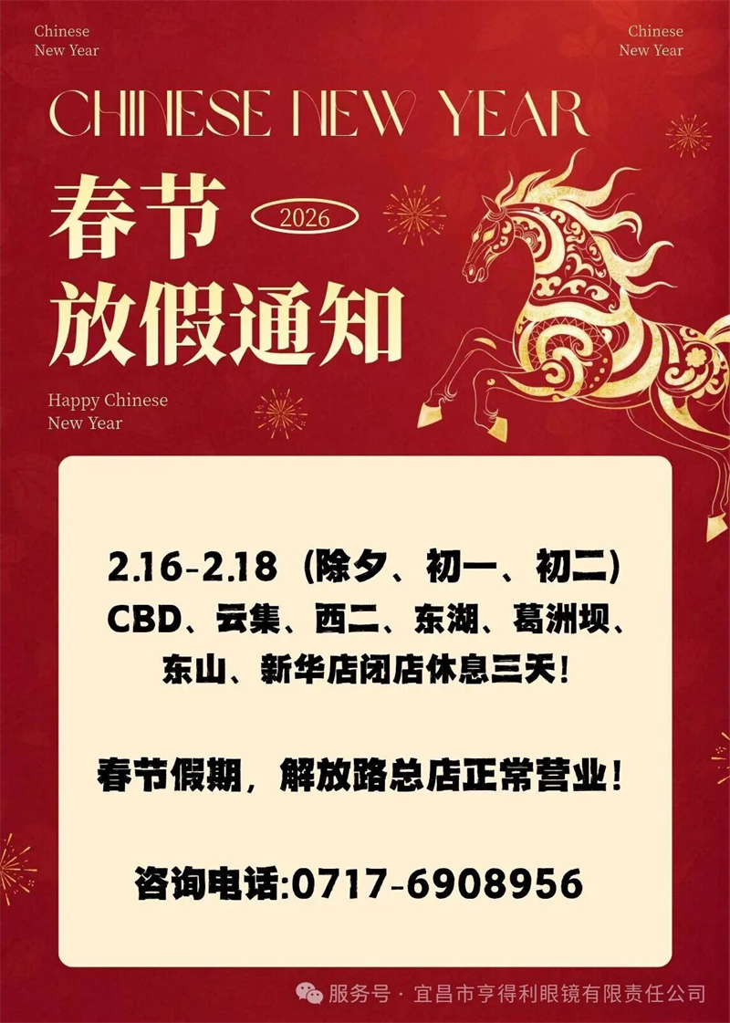 春節(jié)期間,宜昌亨得利眼鏡放假安排如下: